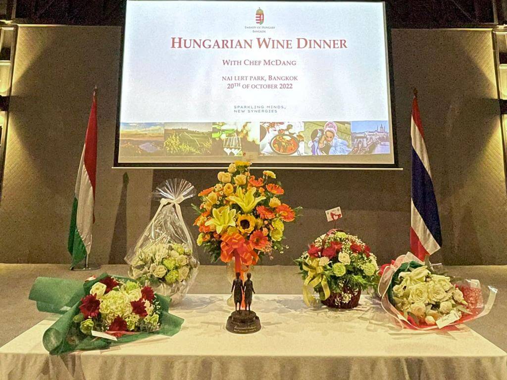 The event served as a perfect example of the great collaboration between Thailand and Hungary, bringing together the culinary flavours of two two countries, accompanied by a selection of premium Hungarian wines. The event received great honour that Chef McDang, Thailand’s leading food expert, chef and author of a number of best selling Thai language cookbooks has created the dinner menu using a mouthwatering blend of Hungarian and Thai ingredients and spices. On the sidelines of the event, several Thai wine distributors exhibited Hungarian wines at their stands.