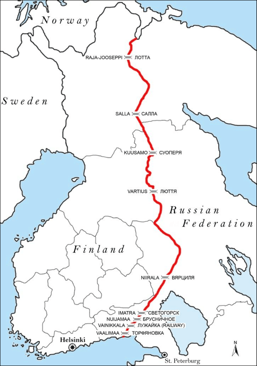 The Finnish/Russian international border is roughly North to South between the Republic of Finland and the Russian Federation. Some 1,340km (830 miles) long, it runs mostly through uninhabited taiga forests and sparsely populated rural areas, not following any particular natural feature or river.