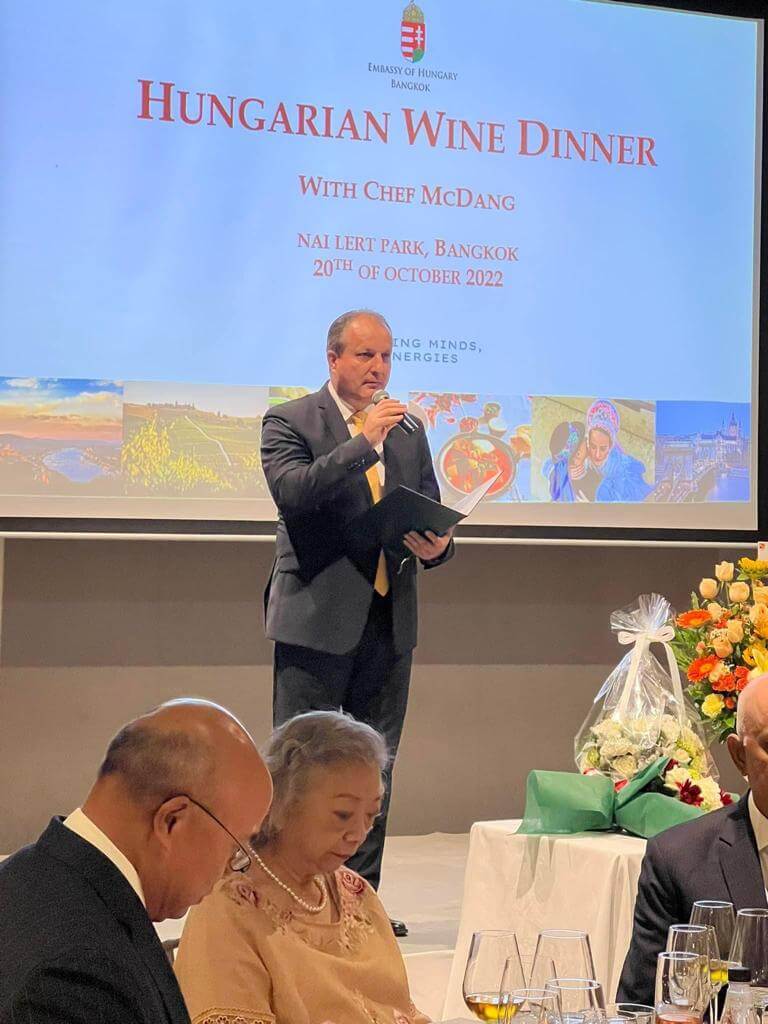 The wine curator for the evening was Mr. Zoltán Zakor, who presented the most informative introduction on the Hungarian wines. Mr. Zakor holds the highly respected Level 3 qualification from the Wine and Spirit Educational Trust and is ranked in Thailand’s TOP 5 on Vivino, the World’s largest wine community application.