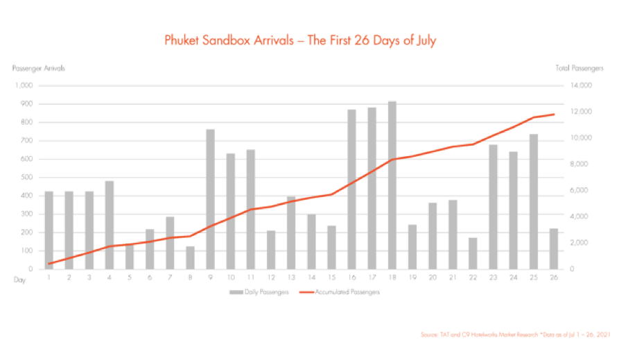 He confirmed there were almost 300,000 rooms booked until the end of August in SHA Plus hotels, with nearly 13,000 arrivals and 124 flights after 28 days, with many more scheduled. Top markets are the US, UK, Israel, Germany, France, the UAE and Switzerland with an average length of stay 11 days.